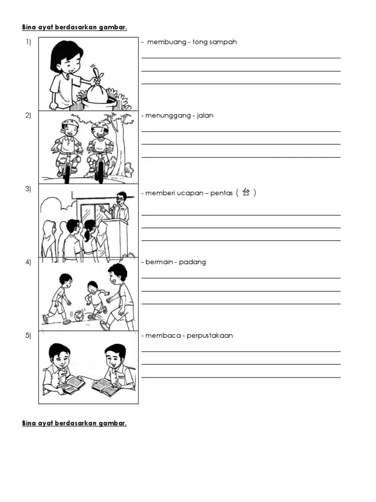 Bina ayat berdasarkan gambar berikut merupakan bahan latihan penulisan bm.
